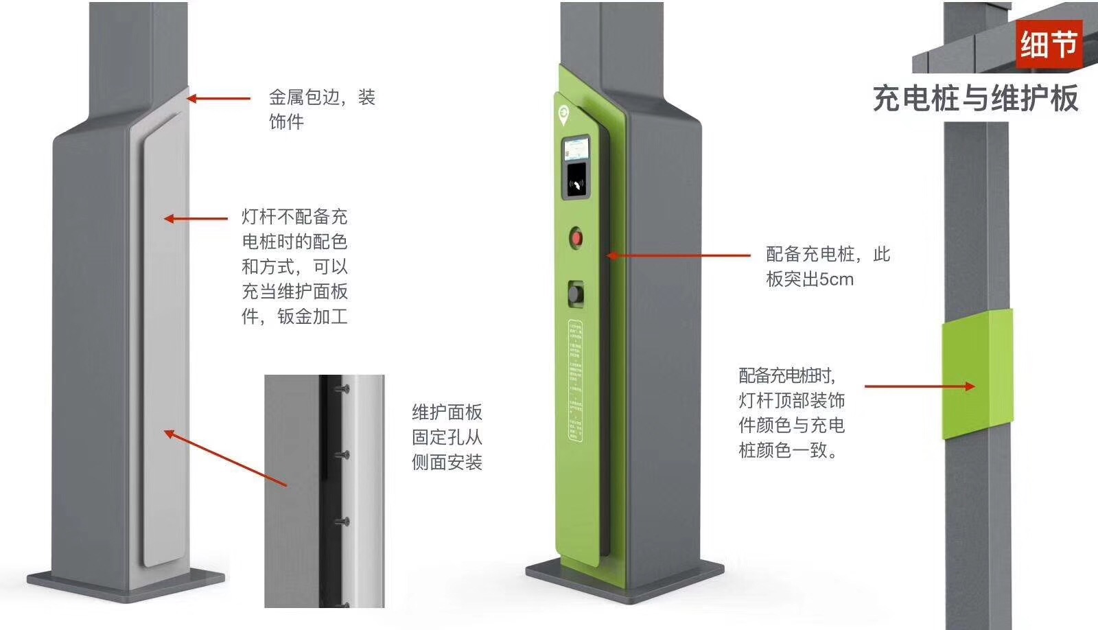 有效利用市政路燈非均衡性供電特征,為電動汽車提供充電接口,通過APP及微信端自動搜尋最近充電站自動導航掃碼充電在線支付,使用7KWAC220最大輸出32A國標交流充電樁。同時本方案的燈杆充可結合新能源汽車分時租賃,提高設施利用率。並可安裝5路USB充電器,為市民提供應急手機電源。